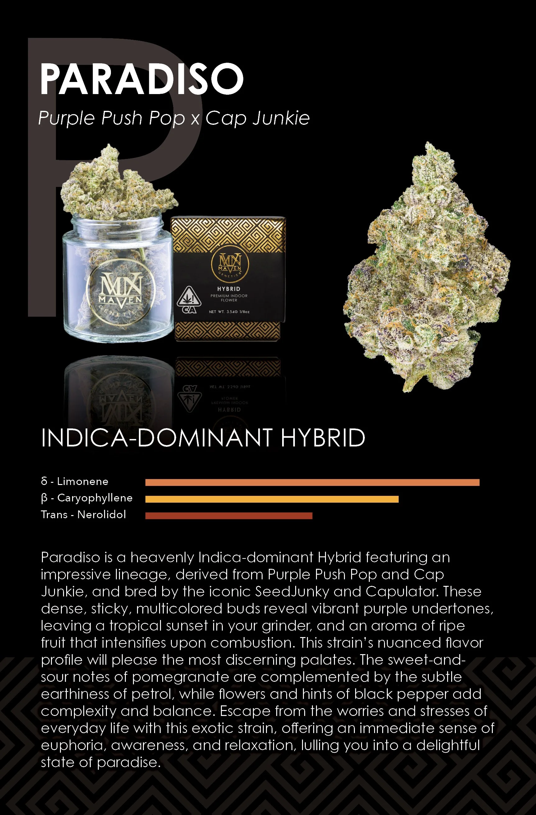 This pheno-hunt was inspired by the season of rebirth, giving new life to old Maven favorites like Grape Cuveé, Medusa, and Sour Sangria, as well as showcasing the genetics of our fellow legacy cultivators SeedJunky, Capulator, and Compound Genetics.