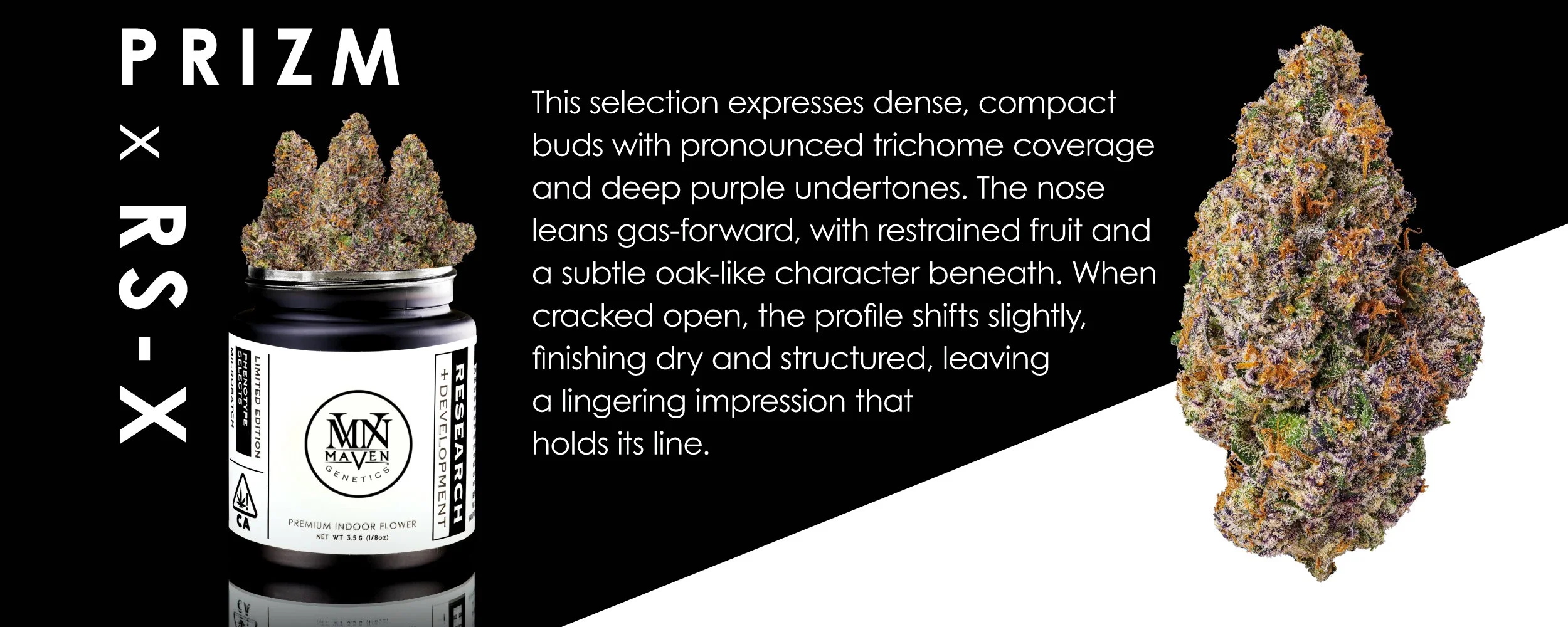 Maven’s Research and Development line showcases limited micro-batches of our newest strains, inviting our community to participate in our selective pheno-hunting process. Feedback collected via our QR system plays a key role in shaping future Maven releases.